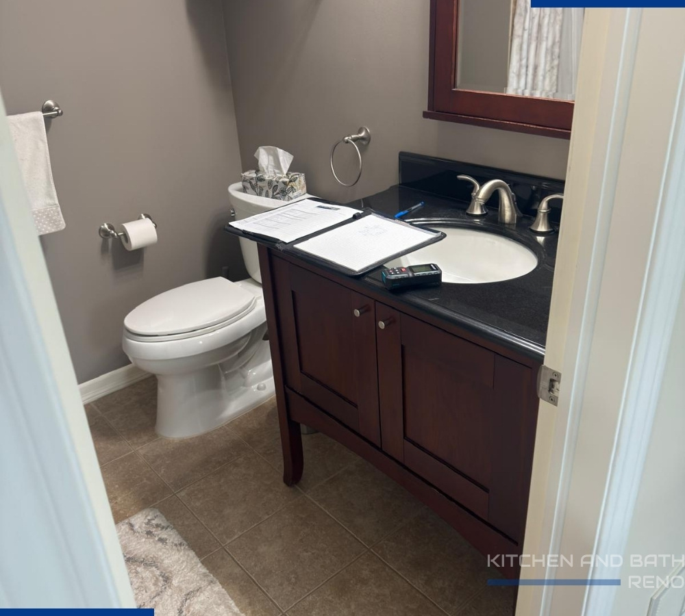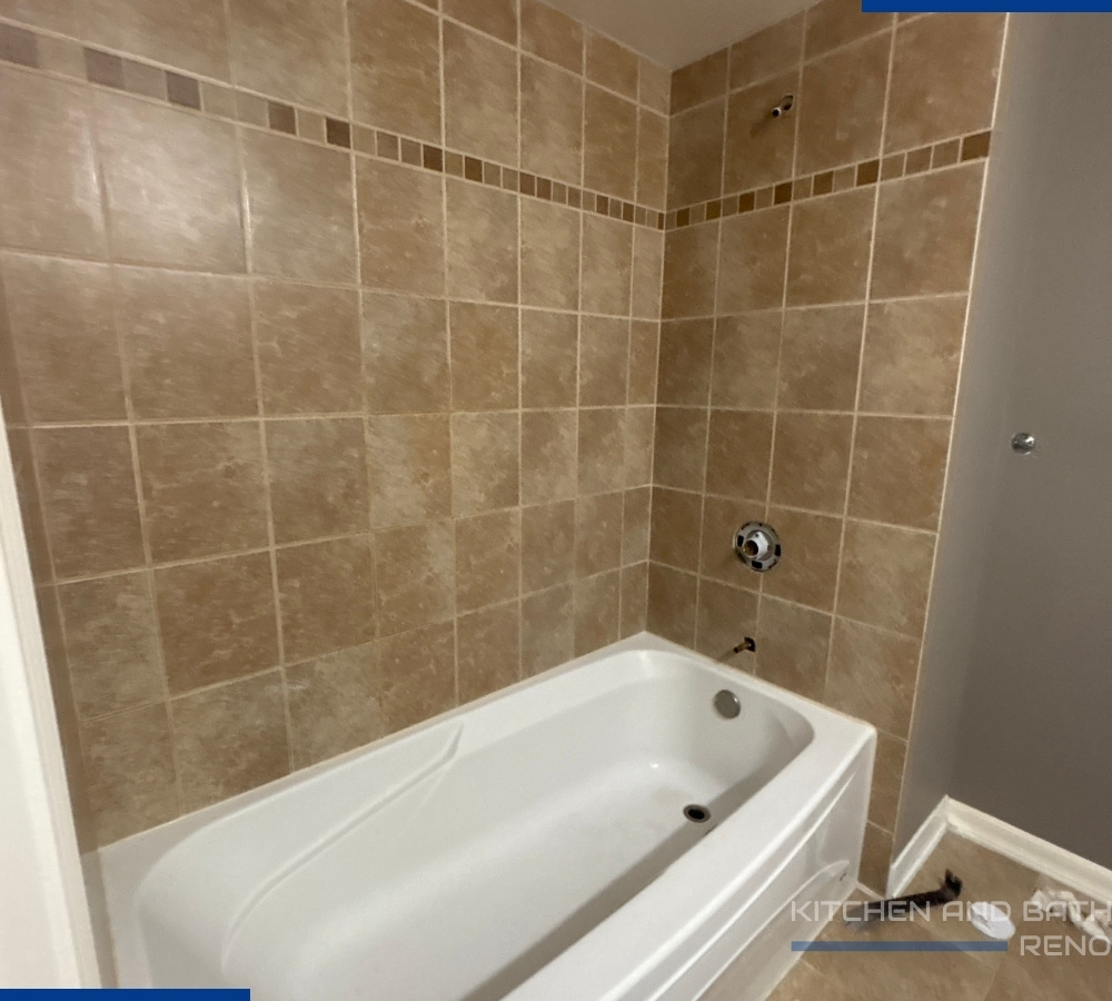 We began with a full demolition and reconfigured the layout to improve flow and usability. A new vanity featuring a warm wood-tone finish was installed, topped with a durable white quartz countertop for contrast and longevity. The combination added warmth while keeping the space modern and clean.